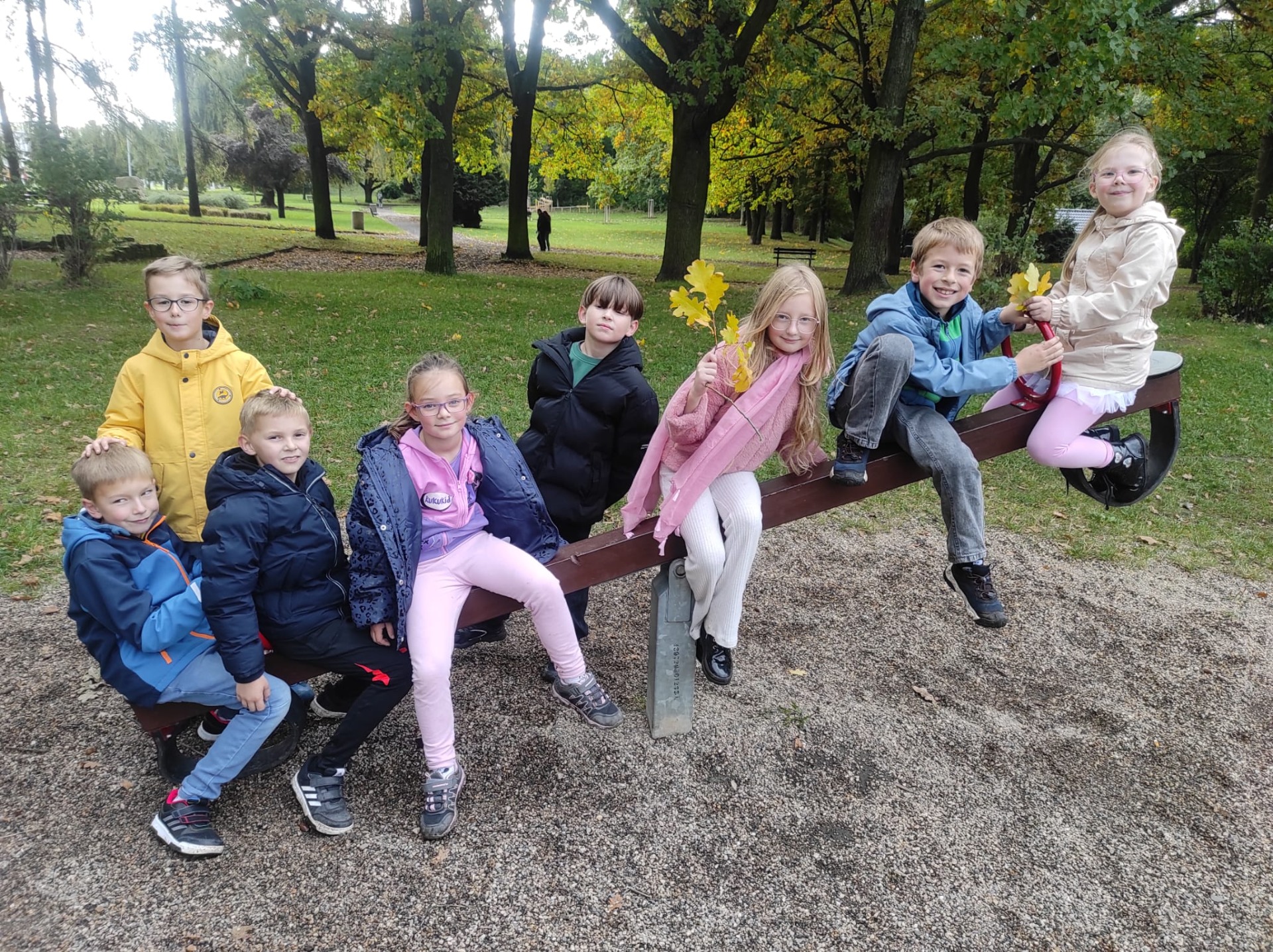Cestou sbíraly žaludy, barevné listy i drobné lesní plody. Na závěr jsme dorazili na hřiště, kde si děti zahrály a odpočinuly.